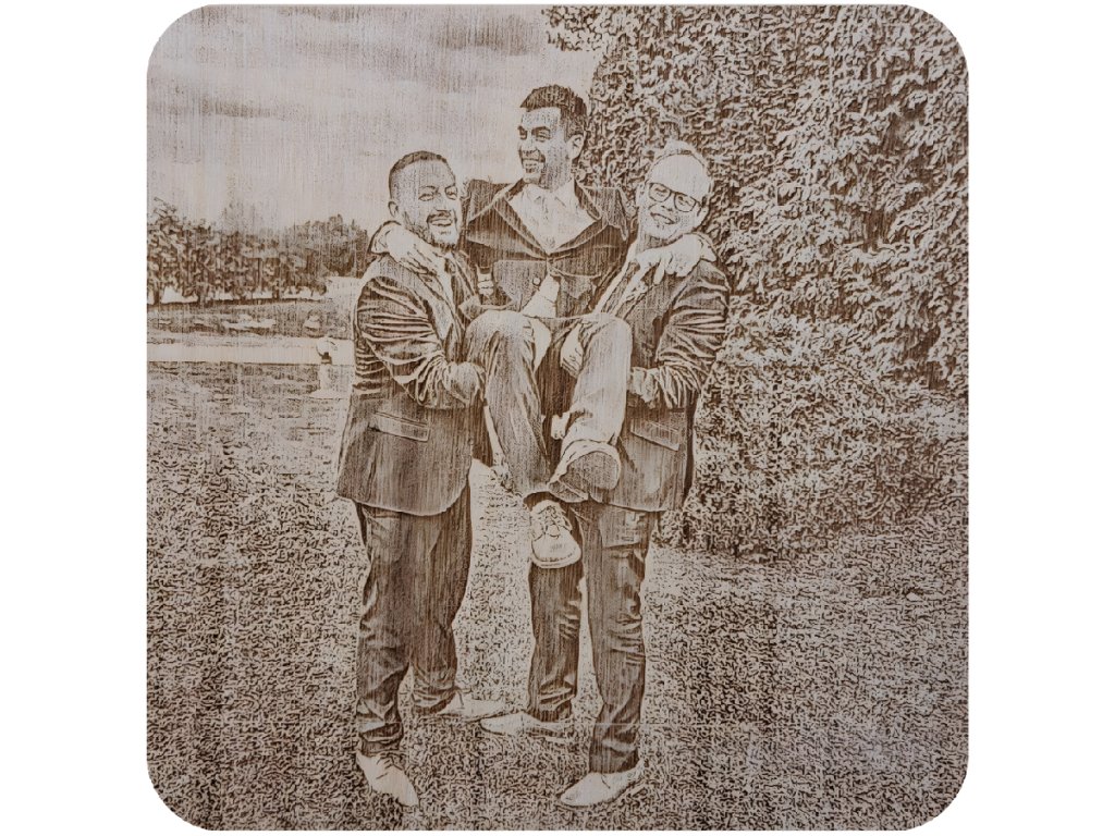 Stačí zaslat svou fotografii – může to být portrét, domácí mazlíček, logo firmy, vtipná momentka nebo cokoliv, co chcete proměnit v trvalou památku. Fotku odborně upravíme pro vypálení do dřeva tak, aby byla dobře čitelná a zachovala co nejvíce detailů. Díky přírodnímu materiálu a vysokému rozlišení laseru je výsledný obraz jemně kontrastní a vkusný, vhodný do domácnosti, kanceláře, na chatu nebo jako dekorace.