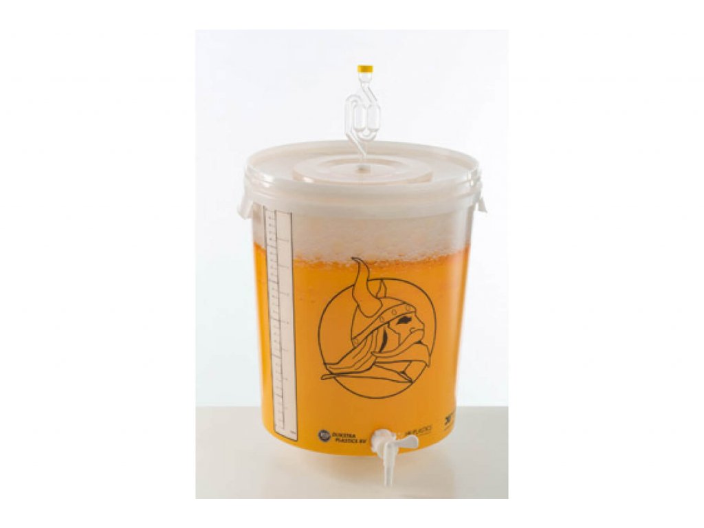 Pojemnik fermentacyjny wykonany z plastiku spożywczego do fermentacji piwa o pojemności 32 l z pokrywką. Wiadro posiada skalę z boku. W zestawie zawór z nakrętką spustową i korek fermentacyjny.